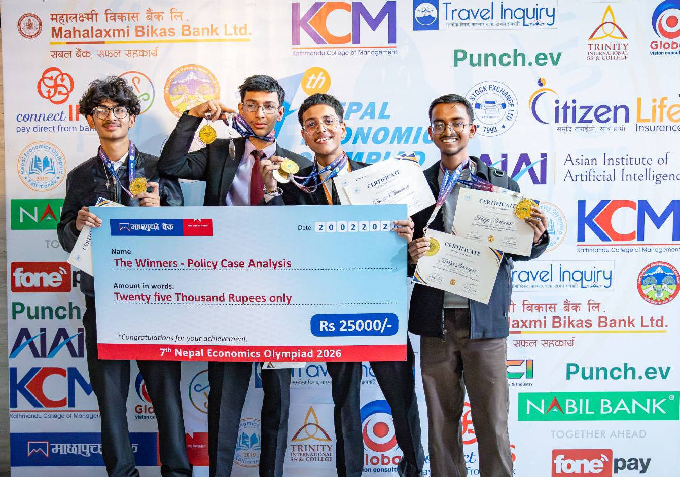 The top five candidates from the National Round of the Nepal Economics Olympiad will represent Nepal at the prestigious International Economics Olympiad 2026 in China.